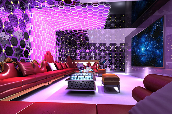包間內使用更具親和力的材料,甚至用皮革將墻面和頂面都包裹起來,營造夢幻般的視覺效果。其中,充滿厚重質感的軟裝飾聯系了各區域視覺的焦點,如紐帶、窗簾、臺布、玻璃隔墻后面的紗縵,處處洋溢著女性化的色彩,這與硬質材料產生較大的反差,突顯了酒吧設計的主題特質,還彰顯了酒吧裝修的檔次。
