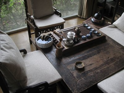 同時茶室裝飾物則可分為擺件、掛件等,具體可以是:綠色植物、插花、雕刻品、雕塑品、金銀器、古銅器、瓷器、陶器、玉器等收藏品,或者剪紙、泥人、臉譜、織繡等地方民俗品、工藝品,琴棋書畫等等都可以作為選擇。包括窗簾、靠墊、紗幔、屏風、竹簾、盆景、鮮花等的擺放設計也要注意整體的協調感和舒適感。