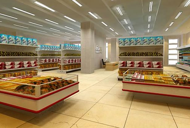 小便利店的內部裝修要力求實用、簡潔大方。墻壁和天花板的色調以簡潔明快的白色為主;地面可以鋪防潮、防滑、堅固耐用的瓷磚。